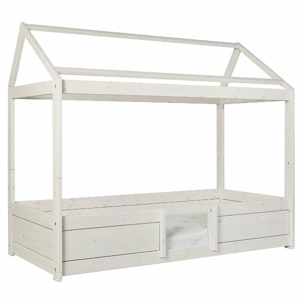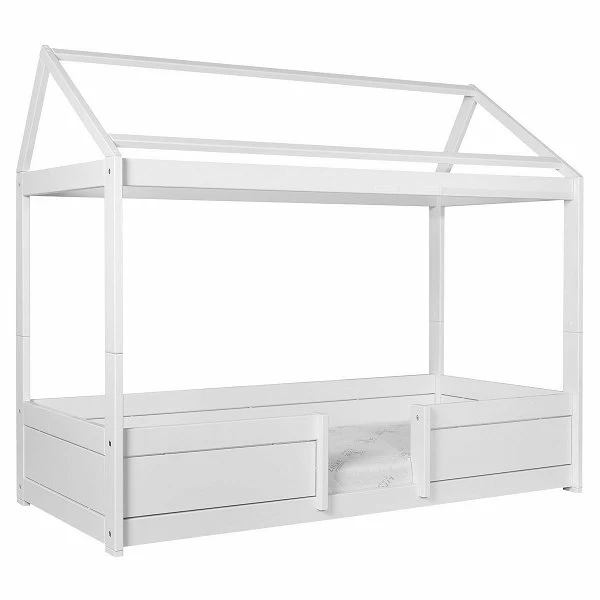 Ein Bett – 4 Möglichkeiten. Mit dem LIFETIME 4 in 1 Hausbett passt man sich den Bedürfnissen des heranwachsenden Kindes über viele Jahre an. Mit einer anfänglichen in Bodenhöhe platzierten Liegefläche ist der Einstieg für das kleine Kind einfach und sicher. Darauf eine Dachkonstruktion für ein Stoffdach (Zubehör), die dem Bett ein außergewöhnliches Aussehen verleiht. Für den späteren Umbau in ein Bett mit Liegefläche in normaler Höhe oder in ein halbhohes Bett mit Leiter sind alle Teile im Paket vorhanden.