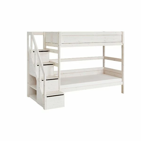 LIFETIME Etagenbett 177 cm mit Treppe – Kiefer whitewash
