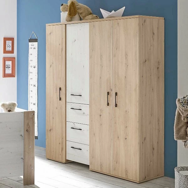 Mäusbacher Micha Kleiderschrank 4-türig in asteiche/artisan weiß