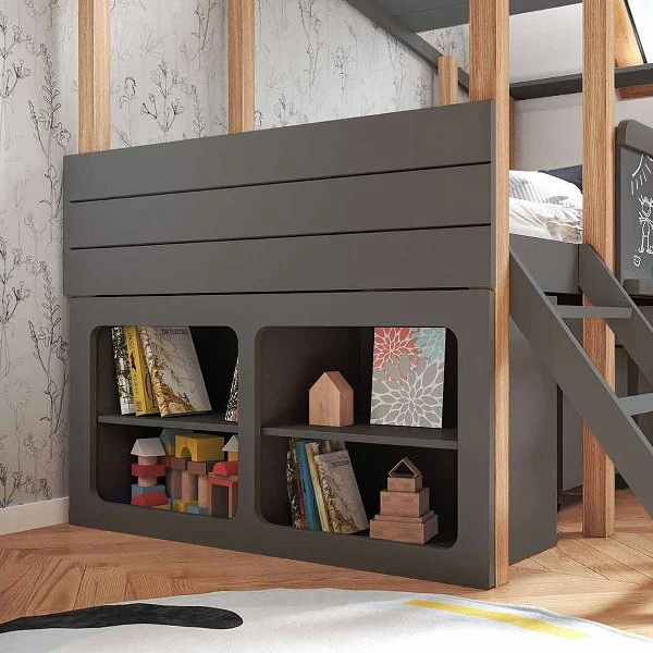 Nature Kid Cory Kinderzimmer anthrazit 8-teilig mit Hausbett, Dach & Schreibtisch