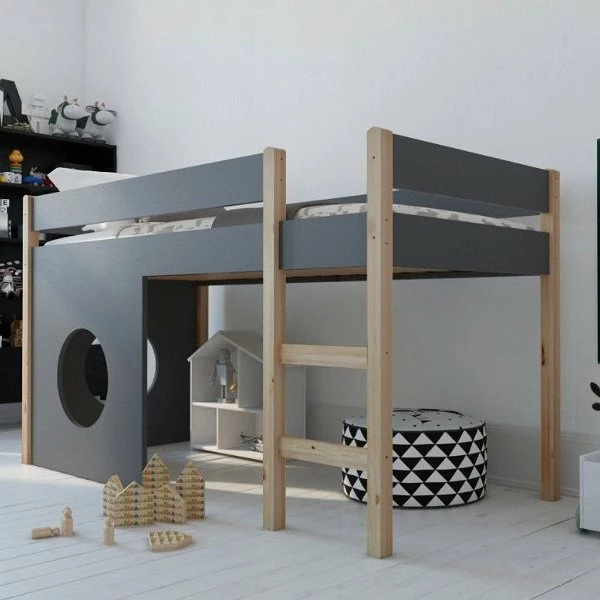 Mit dem Nature Kid Finn Hochbett geht es für Kinder steil nach oben. Der stabile Aufbau kombiniert Sicherheit mit einem schicken Design, welches zum Spielen einlädt und für alles offen ist.