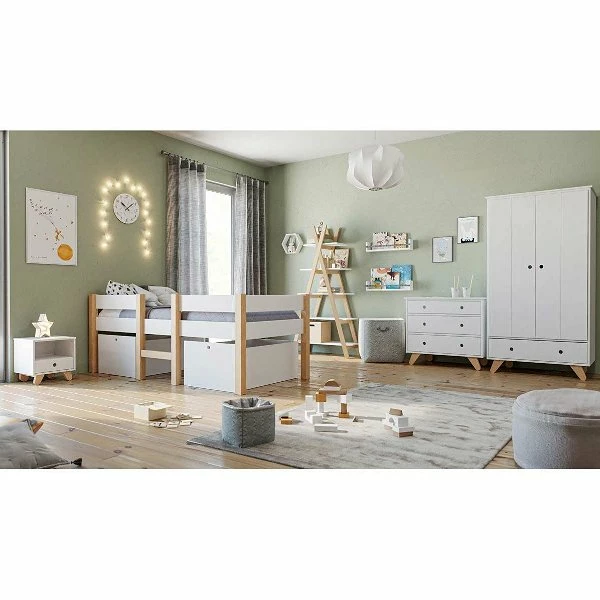 Sparen Sie jetzt mit dem Komplettkinderzimmer Finn / Tipi Wir haben für Sie die beliebten Möbel der Ancona Serie mit dem Halbhochbett Milano zusammengestellt, eine oft bestellte Kombination. Durch dieses Komplettangebot können wir Ihnen einen günstigen Preis anbieten. Mit dem Nature Kid Finn Kojenbett geht es für Kinder steil nach oben. Der stabile Aufbau kombiniert Sicherheit mit einem schicken Design, welches zum Spielen einlädt und für alles offen ist.