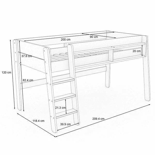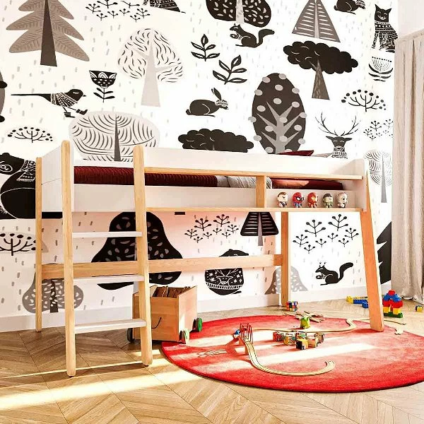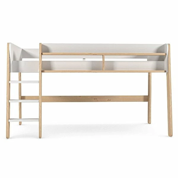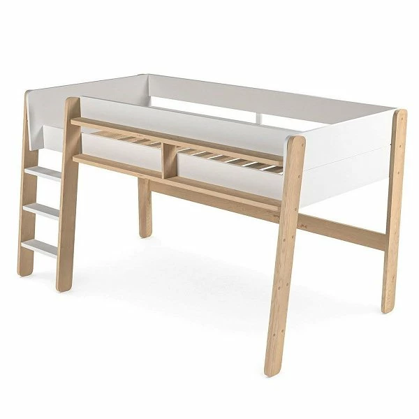 Mit dem Nature Kid Noel Hochbett geht es für Kinder steil nach oben. Neben der Leiter gibt es mehrere Ablagefächer, die Platz für Klemmlampen und Kuscheltiere bieten und auch aus dem Bett heraus noch erreichbar sind. Das Hochbett ist mittelhoch und kann über die Leiter mit 3 sprossen genutzt werden. Der Platz unter dem Bett eignet sich ideal als Spielwiese und kann mit Lichterketten und einem Teppich richtig gemütlich werden.