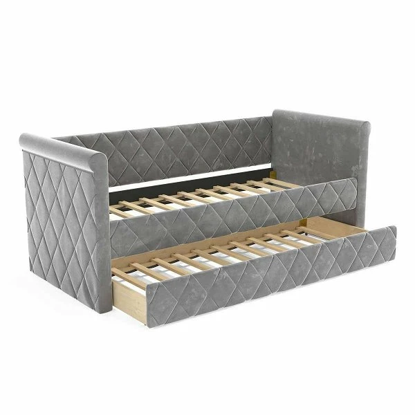 ArtKid Vilena Sofabett – 90 x 200 cm Velour grau mit Gästebett und Spielzeugkiste