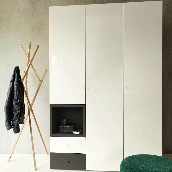 Die now! wardrobes by hülsta Kombination 7 in Lack-grau/Lack-Hochglanz-weiß verfügt über drei Türen, zwei Schubladen und ein offenes Fach und besteht aus zwei Elementen. Der gute alte Kleiderschrank hat sich ganz schön verändert. Dank der unterschiedlichen Höhen sind keine Grenzen gesetzt und auch der begehbare Kleiderschrank wird ein erfüllbarer Wohntraum. Die Schranklösungen von now! wardrobes by hülsta passen perfekt zu allen anderen now! Programmen.