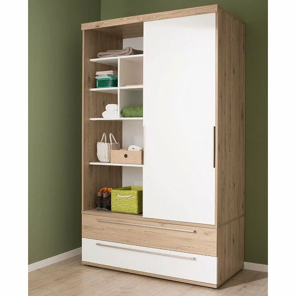 Paidi Fionn/Remo Schiebetürenschrank schmal – 1x kreideweiß 1x Eiche