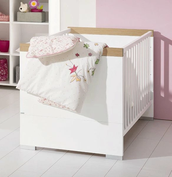 Das Kinderbett Kira besitzt ein geschlossenes Kopf- und Fußteil in edler Optik. Es ist mit 2 herausnehmbaren Schlupfsprossen ausgestattet. Diese erleichtern dem kleinen Bewohner zu gegebener Zeit den Ein- und Ausstieg.