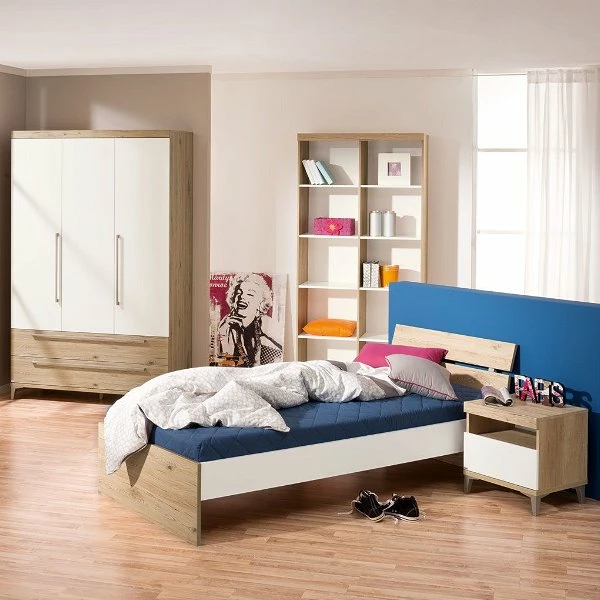 Das Paidi Remo Jugendzimmer kombiniert trendiges Kreideweiß mit einem warmen Eiche-Bordeaux-Dekor und schafft in jedem Jugendzimmer eine gemütliche Atmosphäre . Die breiten Griffe und formschönen Füße in einem farblich harmonierenden Nickelton unterstreichen die moderne und dennoch zeitlose Optik des Paidi Remo Jugendzimmers.