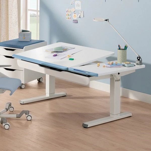 Paidi Teenio Schreibtisch GT Kreideweiß / Hellblau – 130 x 75 cm