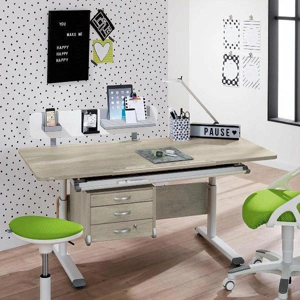 Frei stehend oder links bzw. rechts hängend am Schreibtisch montiert – der Universalcontainer macht immer eine gute Figur. Drei Schubkästen bieten Platz für Stifte, Hefte & Co. und im oberen Schubkasten findet sich eine flache Utensilienschale für allerlei Kleinkram. Er kann platzsparend unter die Tischplatte montiert werden (auch noch nachträglich) oder mit den im Lieferumfang enhaltenen Teppichrollen versehen werden und neben dem Schreibtisch zum Einsatz kommen. Wichtige Sachen können in dem unteren, abschließbaren Schubkasten untergebracht werden.