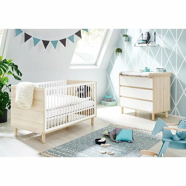 Das Pinolino Flow Sparset zaubert eine helle und einladende Atmosphäre ins Kinderzimmer. Die Kombination aus Esche Dekor mit Echtholzstruktur und klassischem Weiß sorgt in Kombination mit den angeschrägten Griffmulden für eine zeitlose Gemütlichkeit.