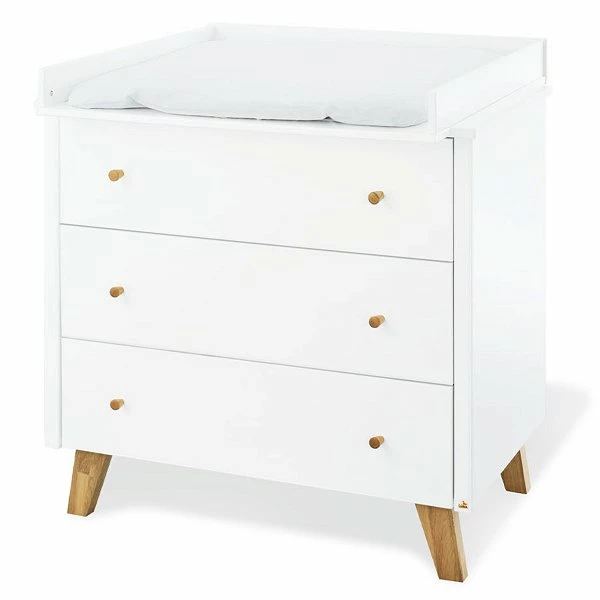 Mit weißen Fronten und Möbelfüßen aus massiver Eiche versprüht das Pinolino Hilda & Pan Kinderzimmer seinen Charme im Reich Ihrer Kleinen. Ein trendiges Design für moderne Familien. Schöne Wimpel- oder Lichterketten lassen sich einfach am Bettrahmen anbringen.
