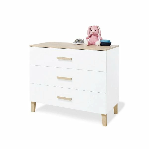 Das Pinolino Lumi Kinderzimmer ist eine Neuheit im Sortiment 2021. Die Kombination von klarem Weiß und der Eiche-Echtholzstruktur passt perfekt zu einer modernen Einrichtung. Die hochwertigen Möbelfüße aus massiver eiche runden das Gesamtbild ab.