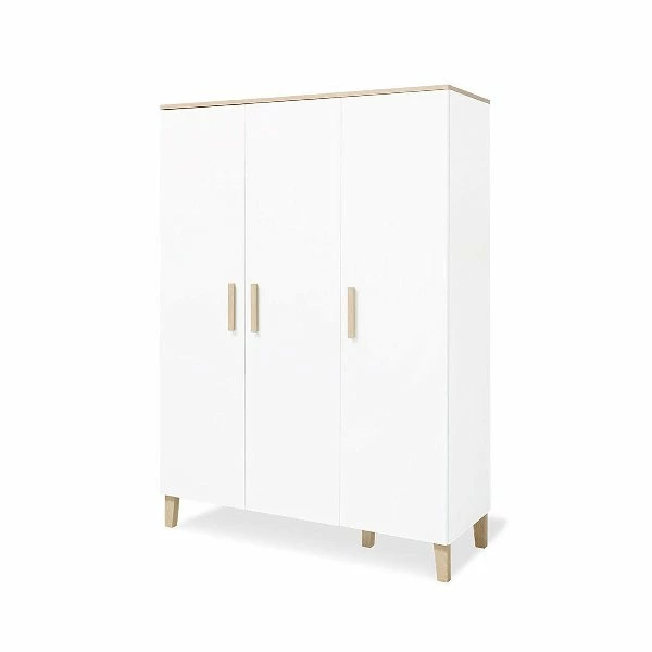 Mit seinem modernen Design lässt der Pinolino Lumi Kleiderschrank jeden Raum erstrahlen. Weiße Fronten und massive Möbelfüße harmonieren perfekt miteinander und hinter den 3 Türen ist jede Menge Platz.