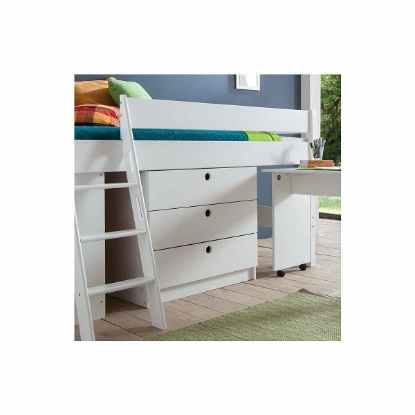 - Halbhochbett KIM aus massiver Buche, weiß lackiert