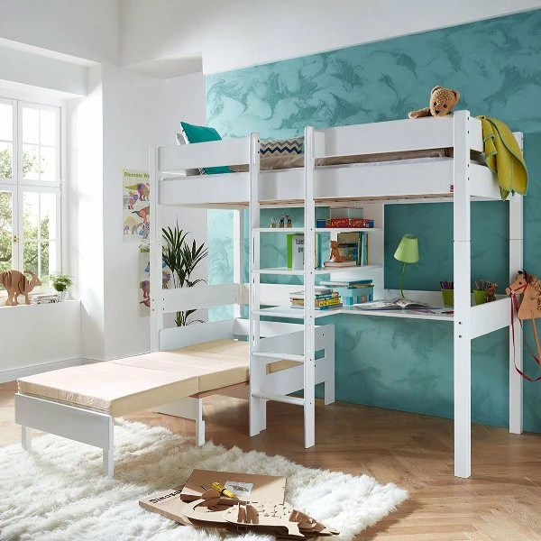 - Hochbett NOEL Buche massiv, weiß lackiert