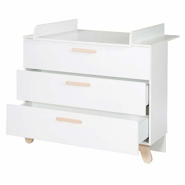 Die roba Clara Wickelkommode hat einen abnehmbaren Wickelaufsatz der sich rechts, mittig oder links anbringen lässt und besitzt eine rückenschonende Wickelhöhe. Die eingebaute Softclose-Technik bei den Schubladen sorgt für ein sanftes und leises schließen. Die Wickelkommode kann später als normale Kommode genutzt werden.
