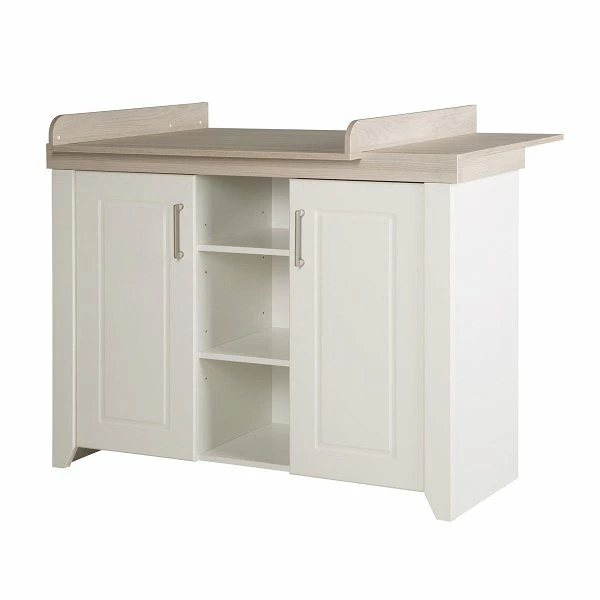 Die Wickelkommode Felicia ist mit 2 Türen und 3 offenen Fächern ausgestattet. Sie wird inklusive Wickelansatz, der jederzeit an die Kommode angesetzt und auch abgenommen werden kann, geliefert.