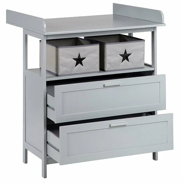 Die Roba Hamburg Wickelkommode verfügt über 2 Schubladen und 2 Canvas Boxen. Die qualifizierte Verarbeitung und hochwertigen, zertifizierten Materialien lassen keinen Zweifel an der Qualität der ausgezeichneten Produkte, die einem lange Freude bereiten werden.