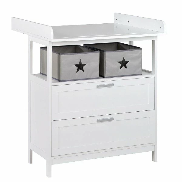 Die Roba Hamburg Wickelkommode verfügt über 2 Schubladen und 2 Canvas Boxen. Die qualifizierte Verarbeitung und hochwertigen, zertifizierten Materialien lassen keinen Zweifel an der Qualität der ausgezeichneten Produkte, die einem lange Freude bereiten werden.