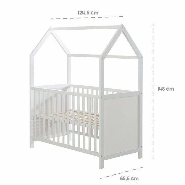 Das Roba Hausbett hat eine Liegefläche von 60×120 cm und ist mehrfach höhenverstellbar. Dank der 5 Schlupfsprossen lässt sich das Hausbett auch als Beistellbett nutzen. Später lässt es sich mit ein paar Handgriffen in ein Kuschelsofa umbauen.