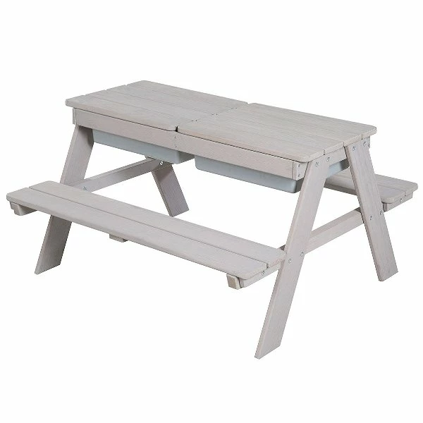 Die Roba Kindersitzgarnitur ist aus hochwertigem, robustem, lasiertem Massivholz gefertigt und dient im Garten als tolle Spielgelegenheit zum Picknicken, Basteln oder Sandburgen bauen. Dank der zwei Spielwannen kann die Kindersitzgarnitur auch super als Matschtisch genutzt werden. Die stabile Konstruktion ohne sichtbare Schrauben in den Oberplatten und die kindgerecht abgerundeten Ecken sorgen für optimale Sicherheit. Die Sitzbänke sind fest verschraubt und auf einer kindgerechten Sitzhöhe.