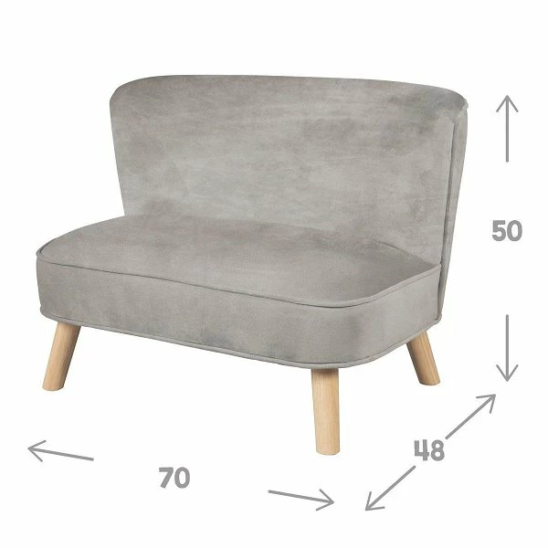Das Roba Kindersofa Lil Sofa ist im trendigen Retro-Look und mit Samtstoff bezogen. Auf dem Kindersofa finden bequem zwei Kinder Platz. Die Kindermöbel stehen auf stabilen Holzfüßen. Dank der niedrigen Sitzhöhe von 27 cm können bereits Kinder ab 18 Monaten auf ihnen platz nehmen.