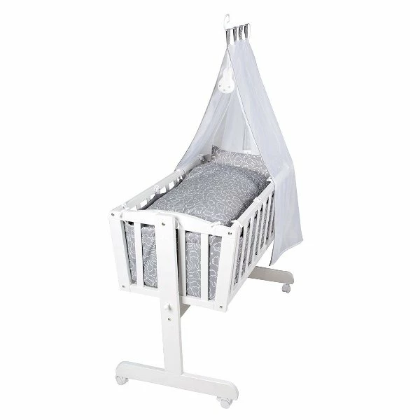 Mit dem Roba Komplettwiegenset lassen sich die Kleinsten wunderbar in den Schlaf wiegen. Die weichen und liebevoll gestalteten Kinderbettausstattungen sowie ein kuschelig gepolsterter Einhang machen das Schlummern besonders bequem. Wenn die Bewegung einmal zuviel werden sollte, lässt sich das Roba Komplettwiegenset schnell und einfach mit einem Feststellknopf fixieren.