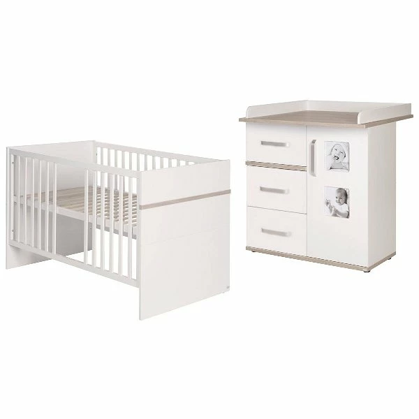 Die Wickelkommode ist mit einem abnehmbaren Wickelansatz ausgestattet. Die 3 Schubladen bieten sehr viel Platz und Stauraum für Windeln und andere Dinge. Der Innenraum hinter der Tür der Kommode ist durch einen Einlegeboden unterteilt. Die integrierten Bilderrahmen können mit persönlichen Fotos bestückt werden und machen die Wickelkommode so zu einem Unikat.