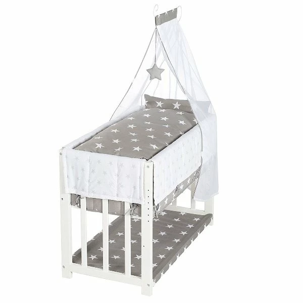 - inkl. Schaummatratze, Bettwäsche, Inlett, gepolstertem Nestchen, Himmel und Himmelstange