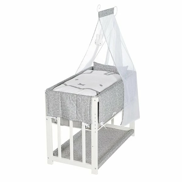- inkl. Schaummatratze, Bettwäsche, Inlett, gepolstertem Nestchen, Himmel und Himmelstange