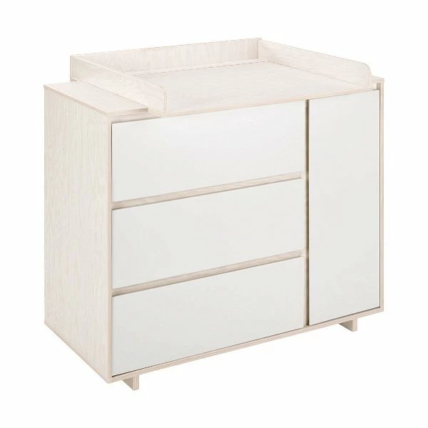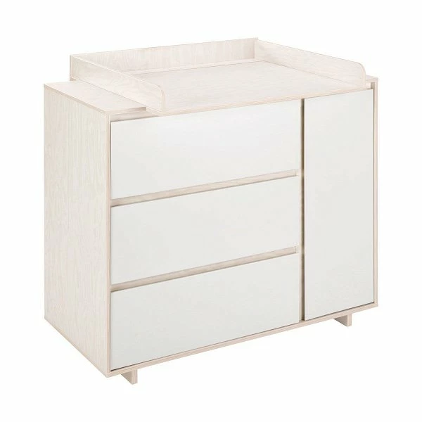Die Wickelkommode Capri white ist mit einem abnehmbaren Wickelaufsatz ausgestattet. So bereitet Ihnen die Kommode auch nach der Wickelzeit noch Freude. Die drei Schübe mit Selbsteinzug und extra starken seitlichen Führungsschienen bieten viel Platz für Windeln und Pflegemittel. Die seitliche Tür ist mit Soft-Close ausgestattet.