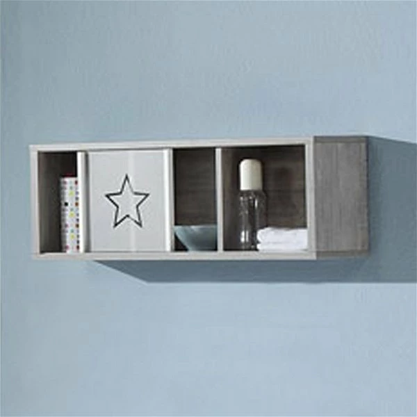 Ein Motiv zum Träumen bietet das Kinderzimmer Eco Star. Die praktischen Schiebetüren sorgen für eine platzsparende Raumgestaltung. Zusätzliche Regale an der Wickelkommode schaffen Ablageflächen für praktische Dinge des Alltags.