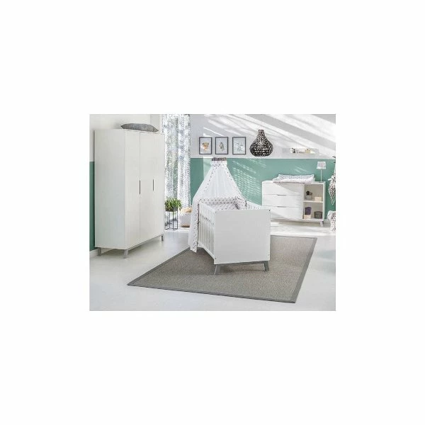 Das Kombikinderbett Florence ist mit weiß lackierten Kantholmgittern aus massiver Buche ausgestattet. Der Lattenrost ist dreifach höhenverstellbar und somit gut anpassbar. Drei Schlupfsprossen erleichtern dem kleinen Bewohner zu gegebener Zeit den Ein- und Ausstieg.