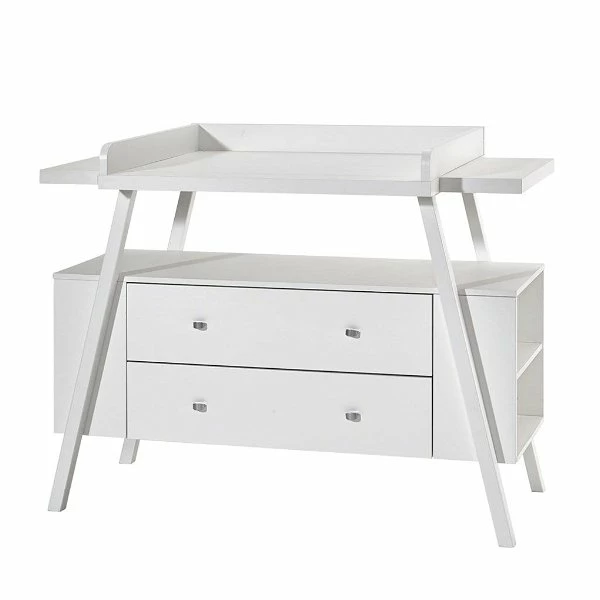 Die Schardt Holly Nature Wickelkommode ist ein Design-Highlight in der modernen Farbkombination weiß/natur. Absoluter Hingucker ist der schräge Massivholzrahmen, der die Wickelplatte schweben lässt.