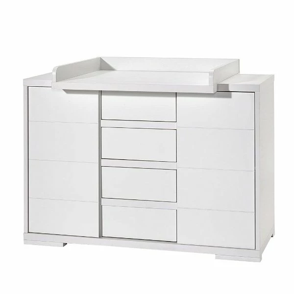 Die Wickelkommode Maxx White ist mit einem abnehmbaren Wickelaufsatz ausgestattet. So bereitet Ihnen die Kommode auch nach der Wickelzeit noch Freude. Die zwei Türen mit Soft-Close-System und die vier Schübe mit Selbsteinzug bieten viel Platz für Windeln und Pflegemittel. Hinter den Türen befinden sich zwei Einlegeböden.