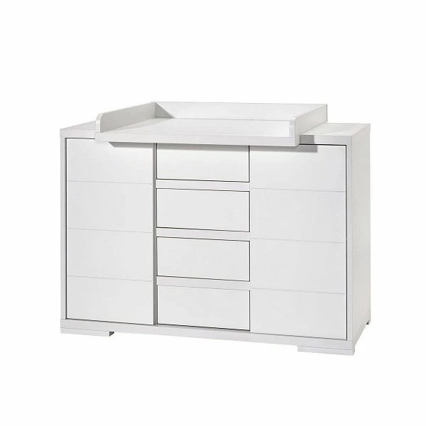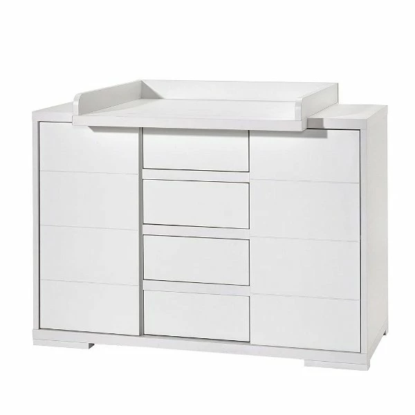 Die Wickelkommode Maxx White ist mit einem abnehmbaren Wickelaufsatz ausgestattet. So bereitet Ihnen die Kommode auch nach der Wickelzeit noch Freude. Die zwei Türen mit Soft-Close-System und die vier Schübe mit Push-to-open bieten viel Platz für Windeln und Pflegemittel.