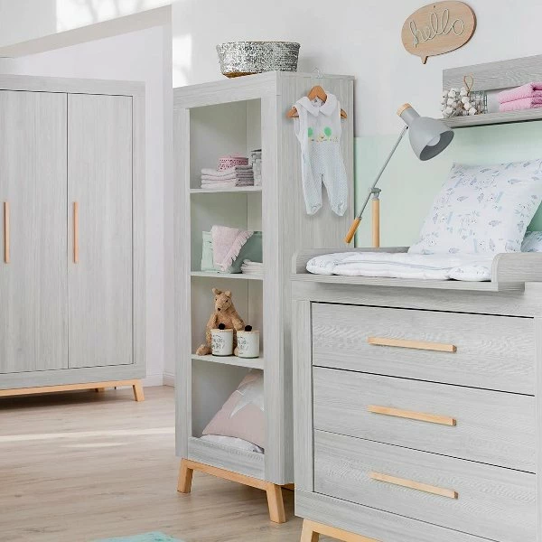 Das Schardt Miami Grey Regal besitzt 4 offene Fächer und kann sowohl im Babyzimmer als auch später im Jugendzimmer oder an anderer Stelle in der Wohnung genutzt werden. Die moderne Kombination von Grau und massiver Buche macht dies möglich.