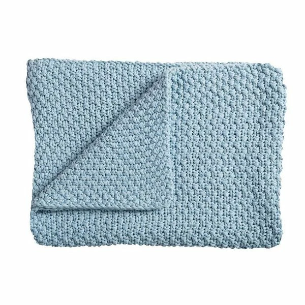 Die kuschelig weiche Schardt Strickdecke in hellblau hat eine Größe von 75×100 cm. Die Kuscheldecke ist aus 100% feinster Baumwolle und ist vielseitig verwendbar z. B. als Tagesdecke oder auch Kuscheldecke. Die Schardt Strickdecke kann problemlos bei 40°C gewaschen werden.