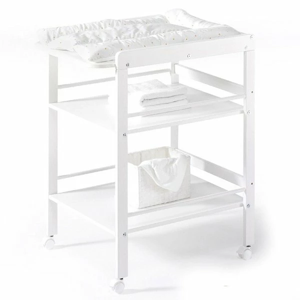 Das Schardt Wickelregal ist aus massiver Kiefer gefertigt. Die 4 praktischen Rollen ermöglichen einen flexiblen Einsatz im ganzen Haus.