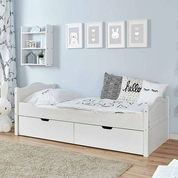Ticaa Einzelbett Leni mit 2er Schubkästen Kiefer weiß – 100×200 cm