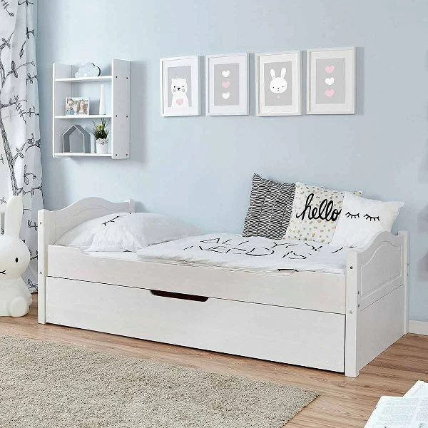 Ticaa Einzelbett Leni mit Zusatzbett Kiefer weiß – 90×200 cm