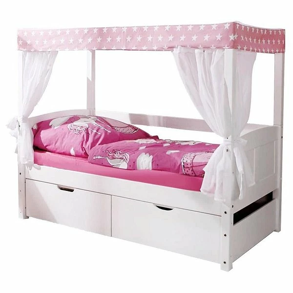 Ticaa Himmelbett MINI Stern Rosa Kiefer weiß – inkl. 2 Schubkästen