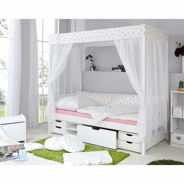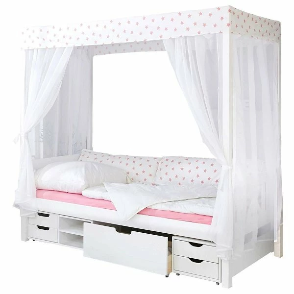 Dieses schöne Ticaa Himmelbett Stern Weiß-Rosa kann optisch absolut überzeugen. Stabilität und Verarbeitung gewähren Ihnen lange Freude an diesem Bett und süße Träume.