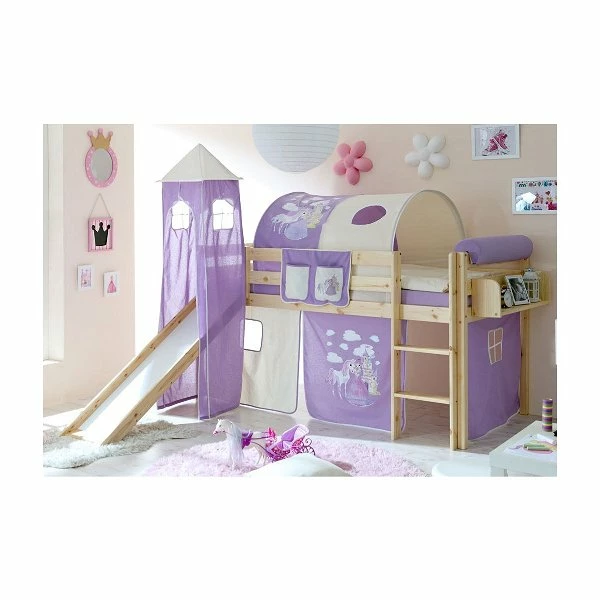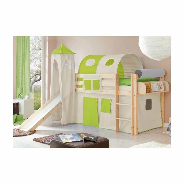 Der Traum eines jeden Kindes! In einer „Höhle“ schlafen, morgens gut gelaunt herunter rutschen und unten im Versteck spielen. Der Turm verleiht dem Ticaa Kasper Rutschbett den Charme einer Burg und dem Besitzer leuchtende Augen. Dank verschiedener Vorhangsstoffe kann das Gesamtbild ganz nach Wunsch angepasst werden, egal ob Mädchen oder Junge.