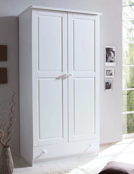 - Kleiderschrank Moritz aus massivem Kiefernholz weiß