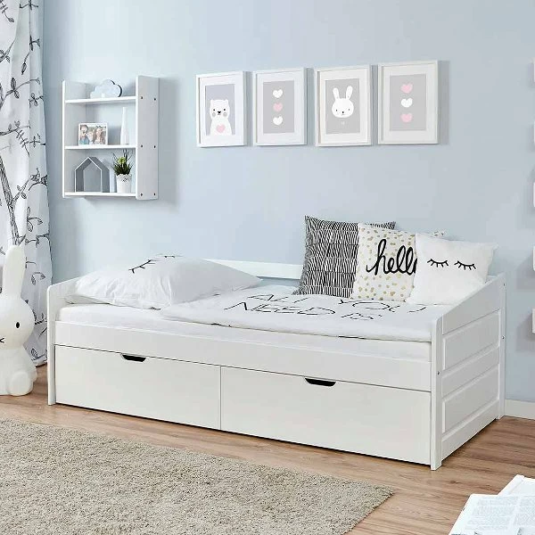 Ticaa Sofabett MINI Micki mit 2er Schubkästen Buche weiß – 80×160 cm