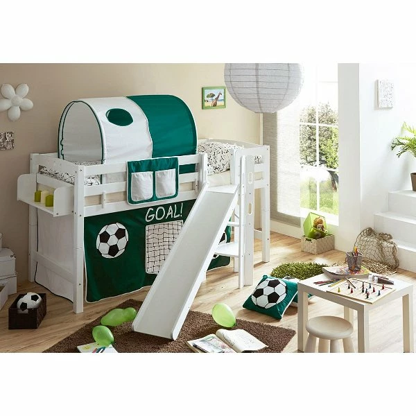 Das Ticaa Tino Podestbett mit Rutsche ist ein ganz persönlicher kleiner Abenteuerspielplatz! Aus massiver Buche gefertigt, eine Leiter mit Griffen für einen einfachen und sicheren Aufstieg und eine stabile Rutsche, die auf eine kleine Plattform führen machen dieses Kinderbett zu etwas ganz besonderem. Der mitgelieferte Vorhang rundet die Optik positiv ab. Optionales Zubehör ist seperat erhältlich!