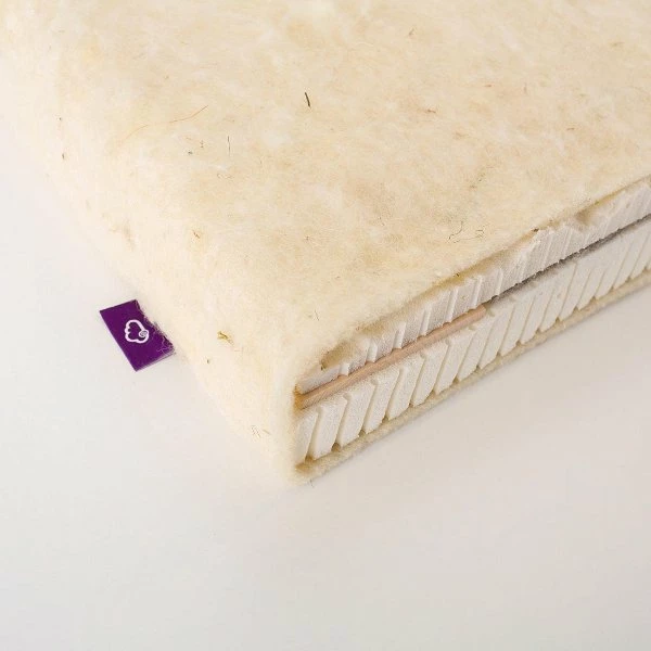 Aus 100 % feinster Naturlatex für exzellenten Liegekomfort. Atmungsaktives Schafschurwollvlies veredelt mit Zirbenholzspänen für gute Belüftung mit einer Babyseite (Noppenstruktur) und Kleinkindseite. Besonders stabile, längsseitige Sicherheitstrittkanten aus Zirbenholz für Sicherheit bei Babys ersten Stehversuchen.