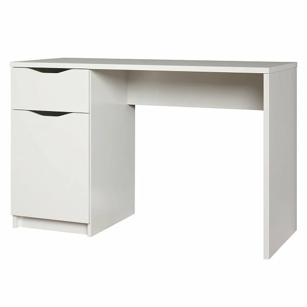 Die trendteam Basix Schreibtisch ist eine platzsparende und stilsichere Lösung für eher kleine Zimmer. Eine tolle Beständigkeit wird durch den Einsatz von Melamin garantiert. Die weiße Front- und Korpusgestaltung schafft einen zeitgemäßen Stil, der sich harmonisch in den Raum integriert.